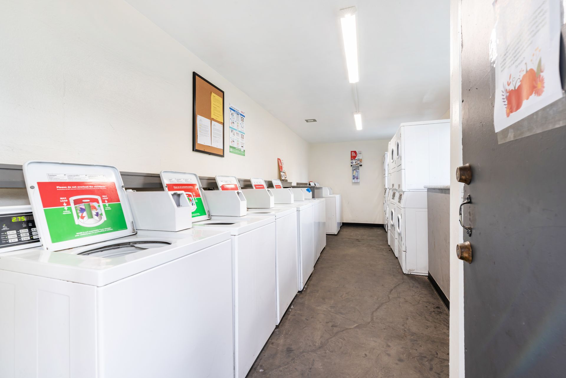 -2 large remodeled laundry rooms onsite with pay-by-phone machines.