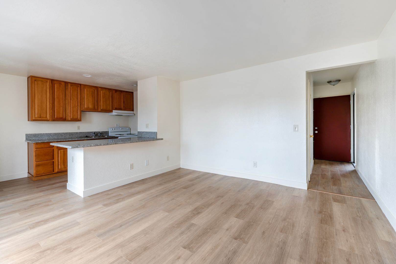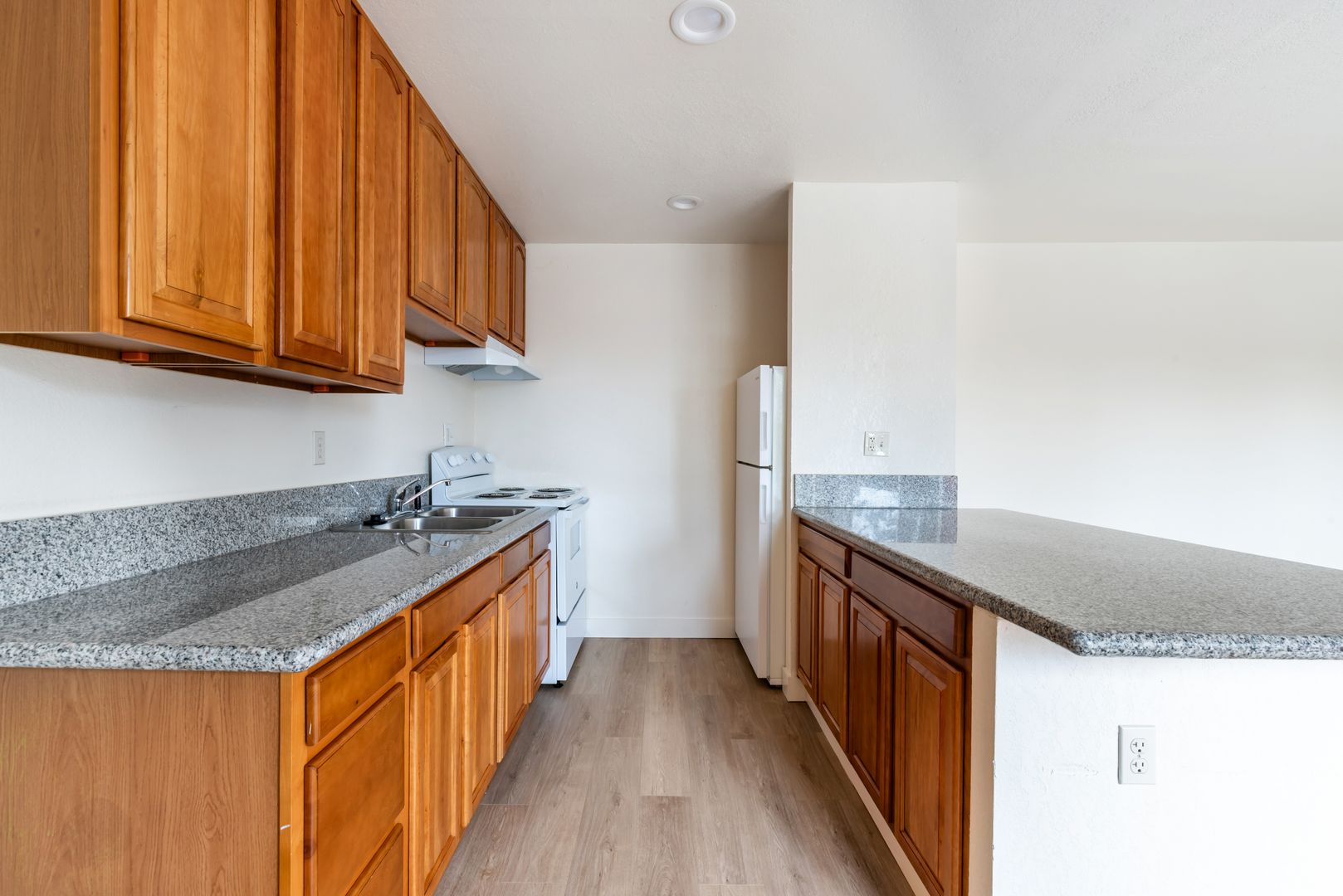 -Wood Look Floors throughout w/ Two Large Carpeted Bedrooms